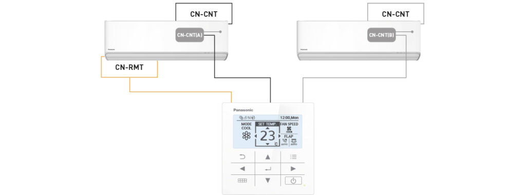 Káblový diaľkový ovládač vďaka integrovanej funkcii striedavej prevádzky zaisťuje nepretržitú prevádzku dvoch jednotiek pre serverovne. Táto funkcia riadi striedavú prevádzku a zálohovanie dvoch jednotiek a je k dispozícii po zapojení voliteľného kábla CN-CNT (CZ-RCC5) medzi ovládač a každú z týchto dvoch vnútorných jednotiek.